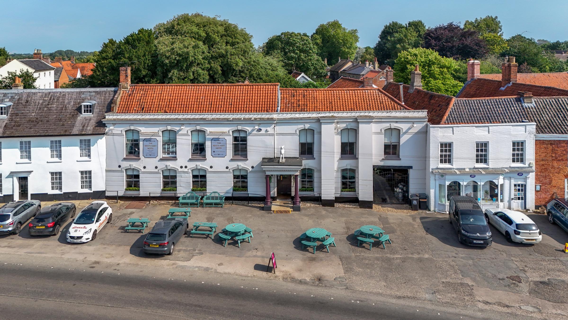 The White Hart Hotel in Hingham is a community boutique hotel and country dining pub housed in a historic medieval building, offering a unique and charming atmosphere with a focus on local ingredients and seasonal menus.